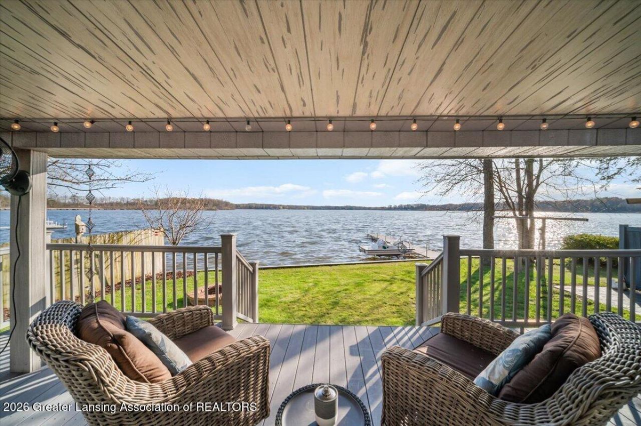 Welcome to 1328 Shepard St, Duck Lake, Crystal, MI. This beautifully updated, move-in-ready lake house is ready for you to enjoy lake living at its finest. Situated on All-sports Duck Lake, the home features a short, level walkout to the water, with 50 ft of sandy, shallow waterfront; perfect for all ages to enjoy. Inside, the open floor plan offers stunning water views from the main living spaces. The custom kitchen includes soft-close cabinetry, high-end appliances, quartz countertops, and a circular peninsula with matching bar stools. A very private owners suite is located on the first floor, tucked behind a hidden shelf door off the kitchen. The suite also features a private entry and a covered porch. The living rooms large windows and patio doors capture beautiful lake views and open to a spacious covered porch. An open staircase leads to the upstairs. Dont let the number of bedrooms fool you?this lake house was thoughtfully designed to accommodate extra family and guests. The upper-level bedroom and family room are optimized to sleep multiple people and include a full bathroom with double vanities, a half bath, and a balcony overlooking the lake. The laundry room, located off the garage, includes a stackable washer and dryer, a beverage fridge and an adjacent 1/2 bath. Outside, a nearby patio area and pergola provide a fantastic space for grilling and entertaining. A fire pit and dock are also included. The attached two-plus-car garage and a new shed with multiple doors offer ample outdoor storage. Additional highlights include a private well, municipal sewer, an Ayers Basement System installed in the crawl space, and composite decking. All of this is located in a close-knit, friendly community that the owners have enjoyed for decades with incredibly low HOA fees of just $25 per year. Not only will you enjoy the best of lake living, but youll also be just minutes from downtown Crystal where you can enjoy a movie at the vintage Crystal Theatre, go skating at Rainbow Gardens Roller Rink, or experience the excitement of Crystal Motor Speedway. Duck Lake is conveniently located about an hour from Grand Rapids, Lansing, and Saginaw, and approximately two hours from the Detroit area, making it an ideal lakefront escape thats never too far from home. An additional off-lake lot located directly across from the home is available to the buyer of the home for an additional $25,000. Whether youre looking for a weekend retreat, a summer getaway, or full-time living, this property offers the perfect lake lifestyle.